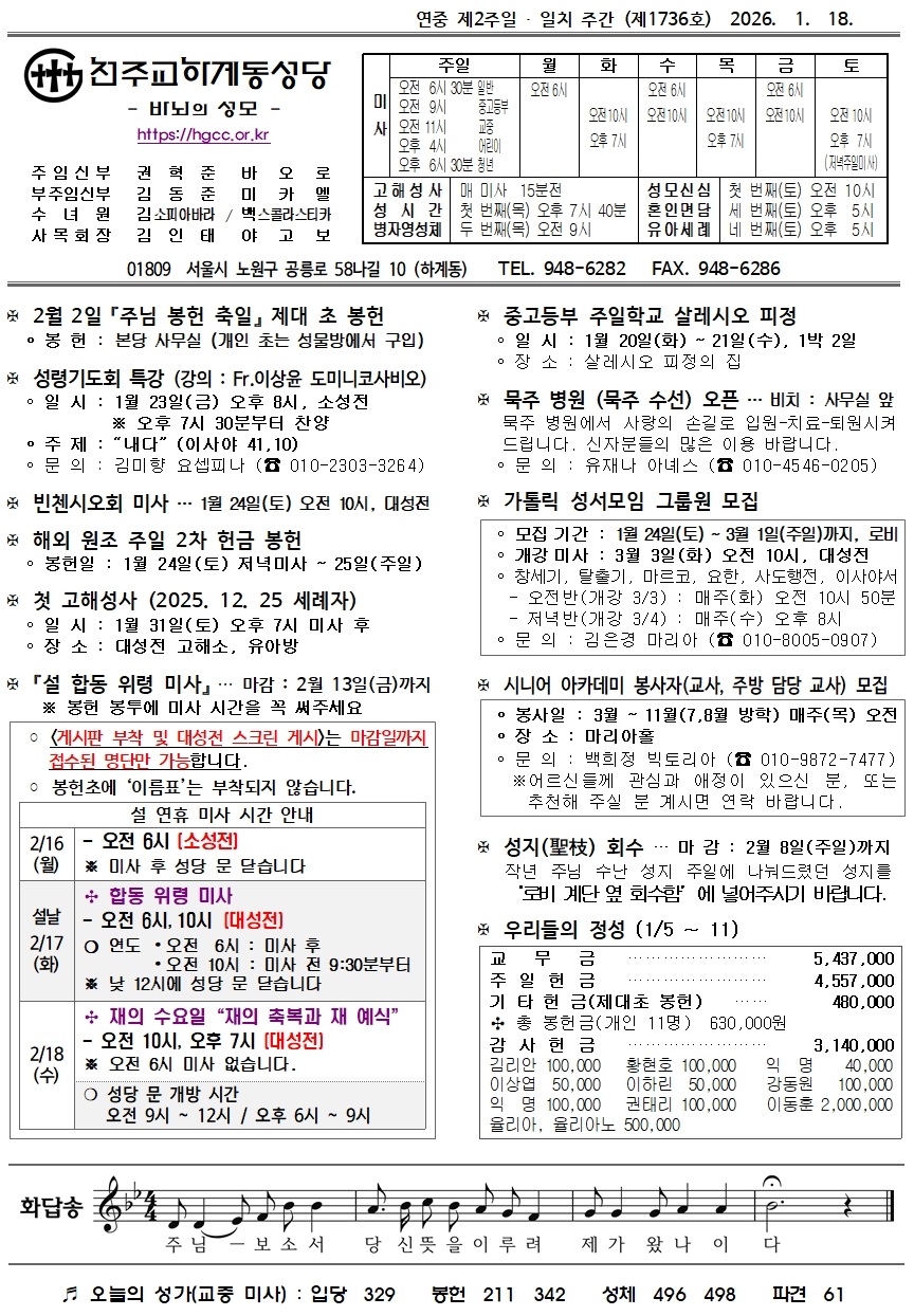 제1736호(2026. 1. 18.) 연중 제2주일 · 일치 주간(~25일)