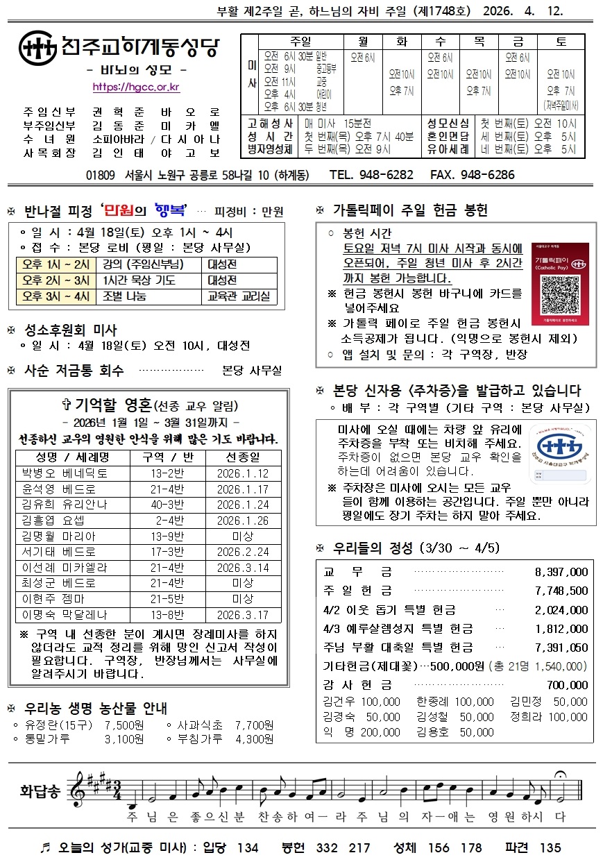 제1748호(2026. 4. 12.) 부활 제2주일 · 하느님의 자비 주일