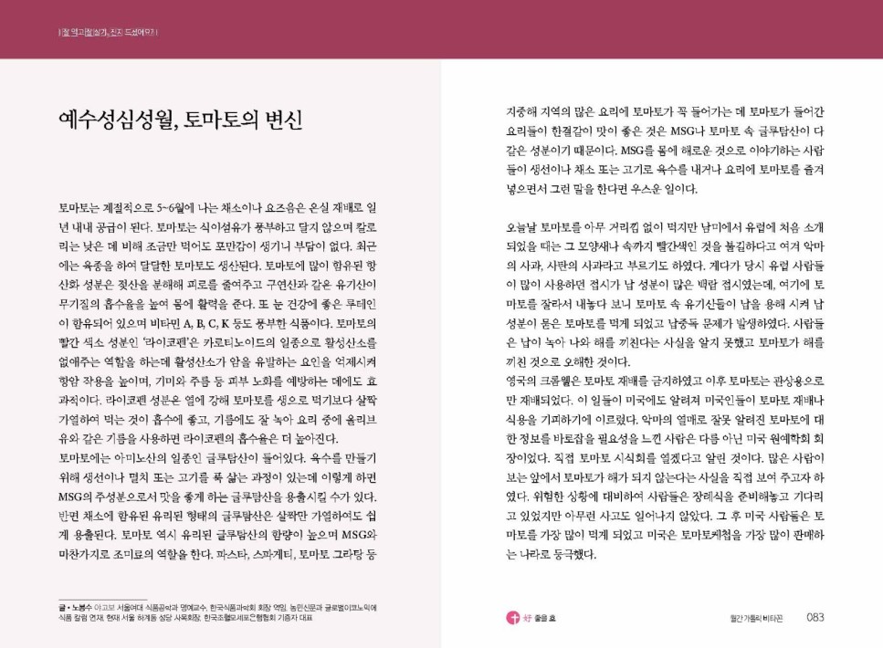 예수성심성월, 토마토의 변신 - 노봉수 야고버 회장님 글입니다.