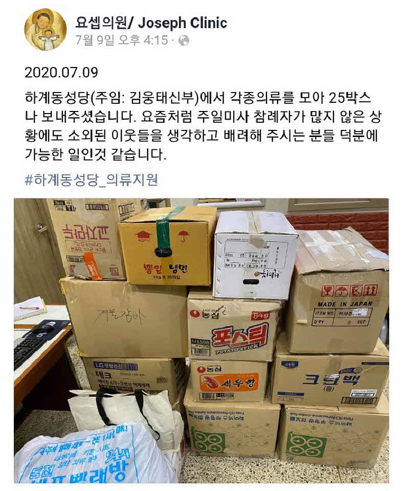 하계동성당의 의류 지원에 감사드립니다~
