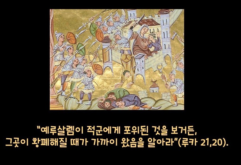 예루살렘이 포위되는 현실 속에서도 예수님은 제자들에게 도망칠 길을 알려주셨고, 혼란 속에서도 하늘의 표징을 읽는 법을 가르쳐 주셨다. 무엇보다 우리가 바라보아야 할 중심이 어디인지 다시 일깨워 주셨다.
