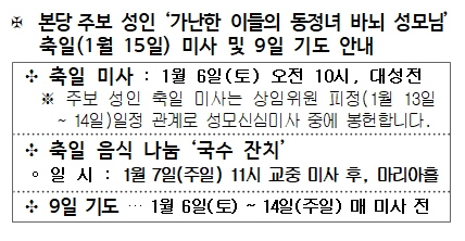 2024.01 06 주보성인 축일행사일자 변경 - 첨부파일 : aa24bccb_c1d6bab8bcbac0cec3e0c0cfc7e0bbe7baafb0e6.jpg (115byte) - 다운로드 467 이전글 다음글 목록 본문