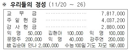 2023.11 20/26 우리들의 정성(2023년 11월 20일~26일) - 첨부파일 : 08dd6421_bfecb8aeb5e9c0c7_c1a4bcba28202311207e112629.jpg (50byte) - 다운로드 469 이전글 다음글 목록 본문