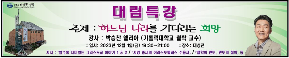 대림특강 주제: 하느님의 나라를 기다리는 희망 (박승찬엘리아 - 가톨릭대학교 철학과 교수) > 본당연혁