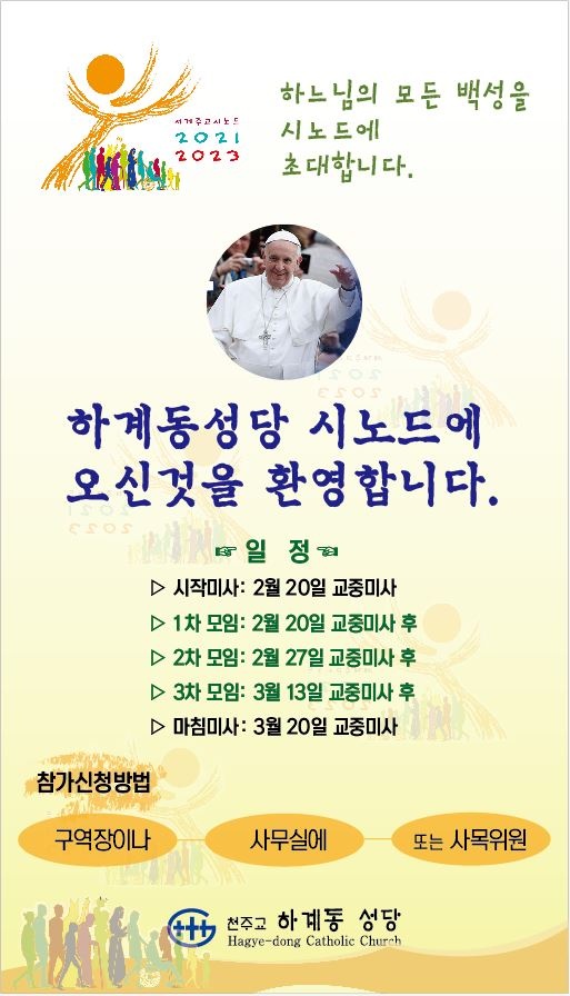 2022. 02 20 함께 걷는 여정의 '시노드(Synod)와 제 16차 세계주교시노드' - Adsumus Sancte Spiritus - 첨부파일 : ffb94802_282022022029.jpg (104byte) - 다운로드 490 이전글 다음글 목록 본문