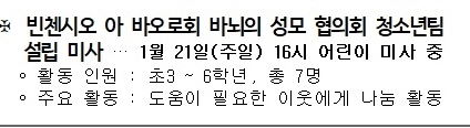 2024.01 21 청소년 빈첸시오회 창립식 - 첨부파일 : bdd182fd_c3bbbcd2b3e2_baf3c3bebdc3bfc0c8b8_c3a2b8b3bdc4.jpg (37byte) - 다운로드 451 - 첨부파일 : 14a75151_kakaotalk_20240206_112313895_13.jpg (3.9K) - 다운로드 449 이전글 다음글 목록 본문