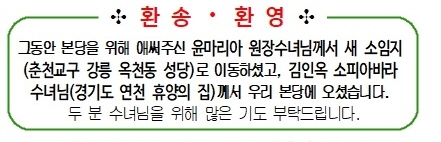 2024.02 04 윤마리아 수녀님 환송 및 김소피아바라 수녀님 환영 - 첨부파일 : 87d004d4_bcf6b3e0b4d4_c8afbcdb_c8afbfb5.jpg (52byte) - 다운로드 453 이전글 다음글 목록 본문