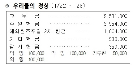 우리들의 정성(2024년 1월 22일 ~ 28일)