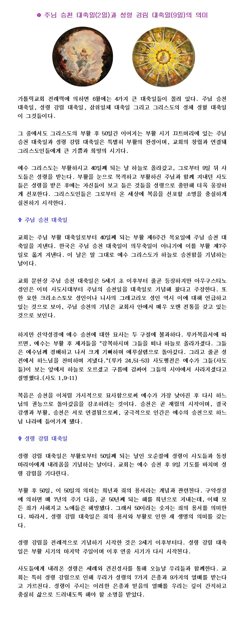 주님 승천 대축일과 성령 강림 대축일의 의미