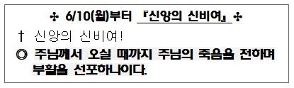 6/10(월) 부터 "신앙의 신비여!"