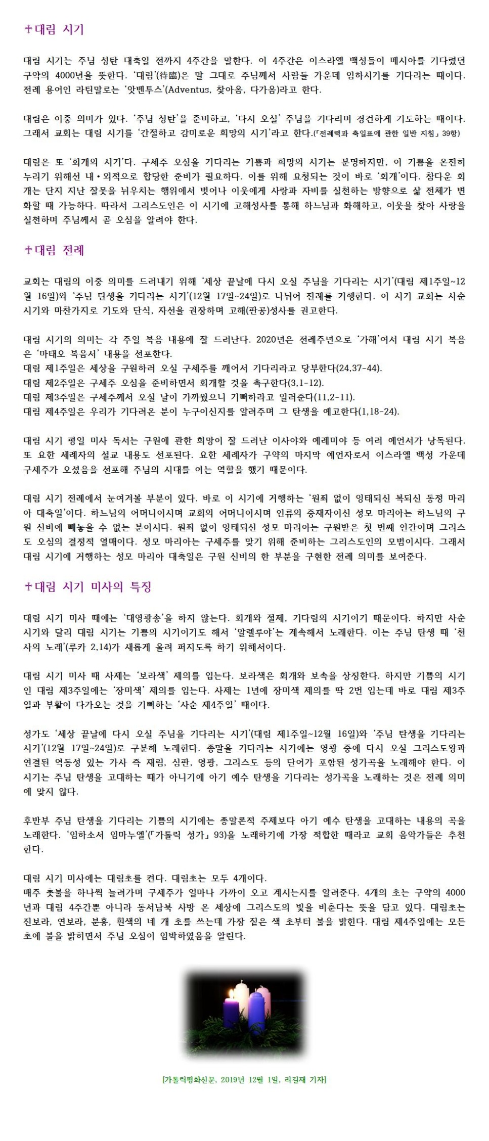 전례력의 시작 - 대림(待臨) 시기
