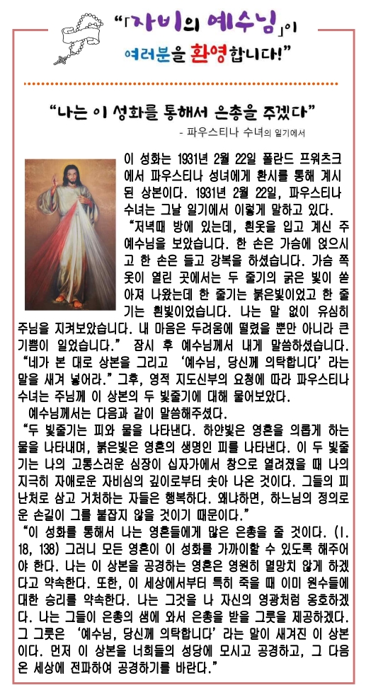 "자비의 예수님이 여러분을 환영합니다."