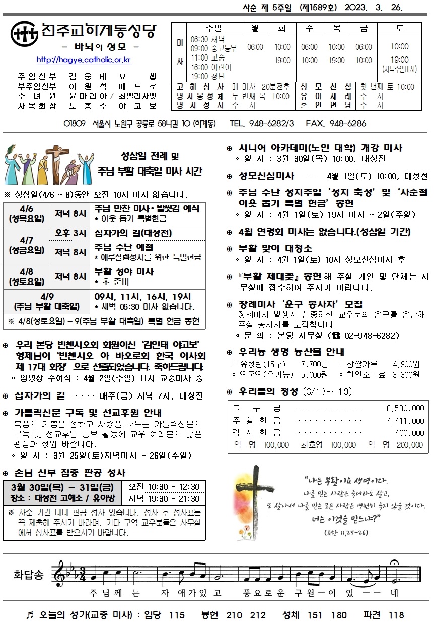 제1589호(2023. 3. 26.) 하계동성당주보 : 사순 제 5주일
