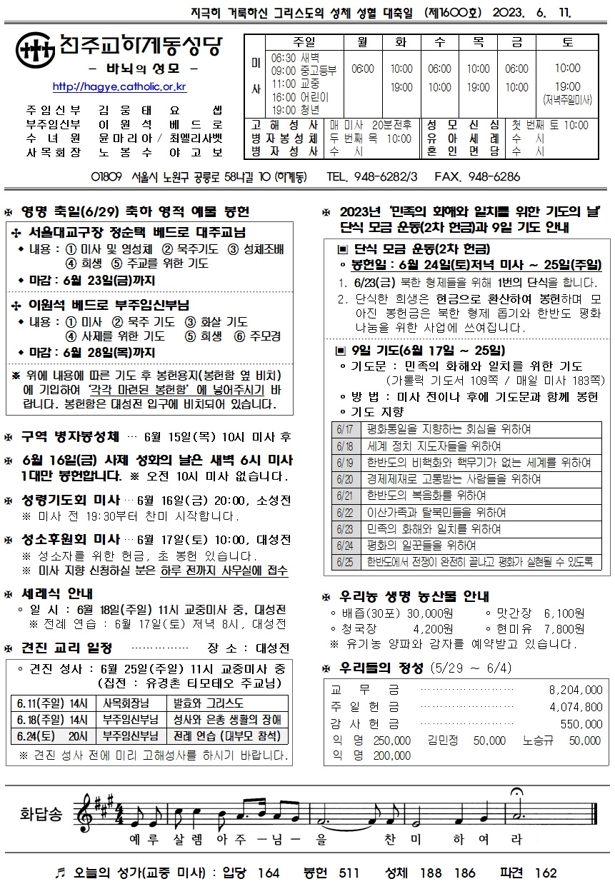 제1600호(2023. 6. 11.) 하계동성당주보 : 지극히 거룩하신 그리스도의 성체 성혈 대축일