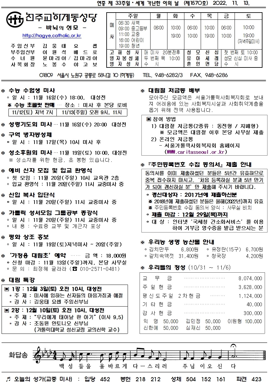제1570호(2022. 11. 13.) 하계동성당주보 : 연중 제 33주일 · 세계 가난한 이의 날