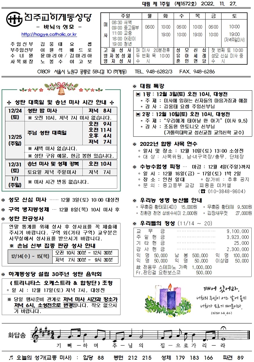 제1572호(2022. 11. 27.) 하계동성당주보 : 대림 제 1주일