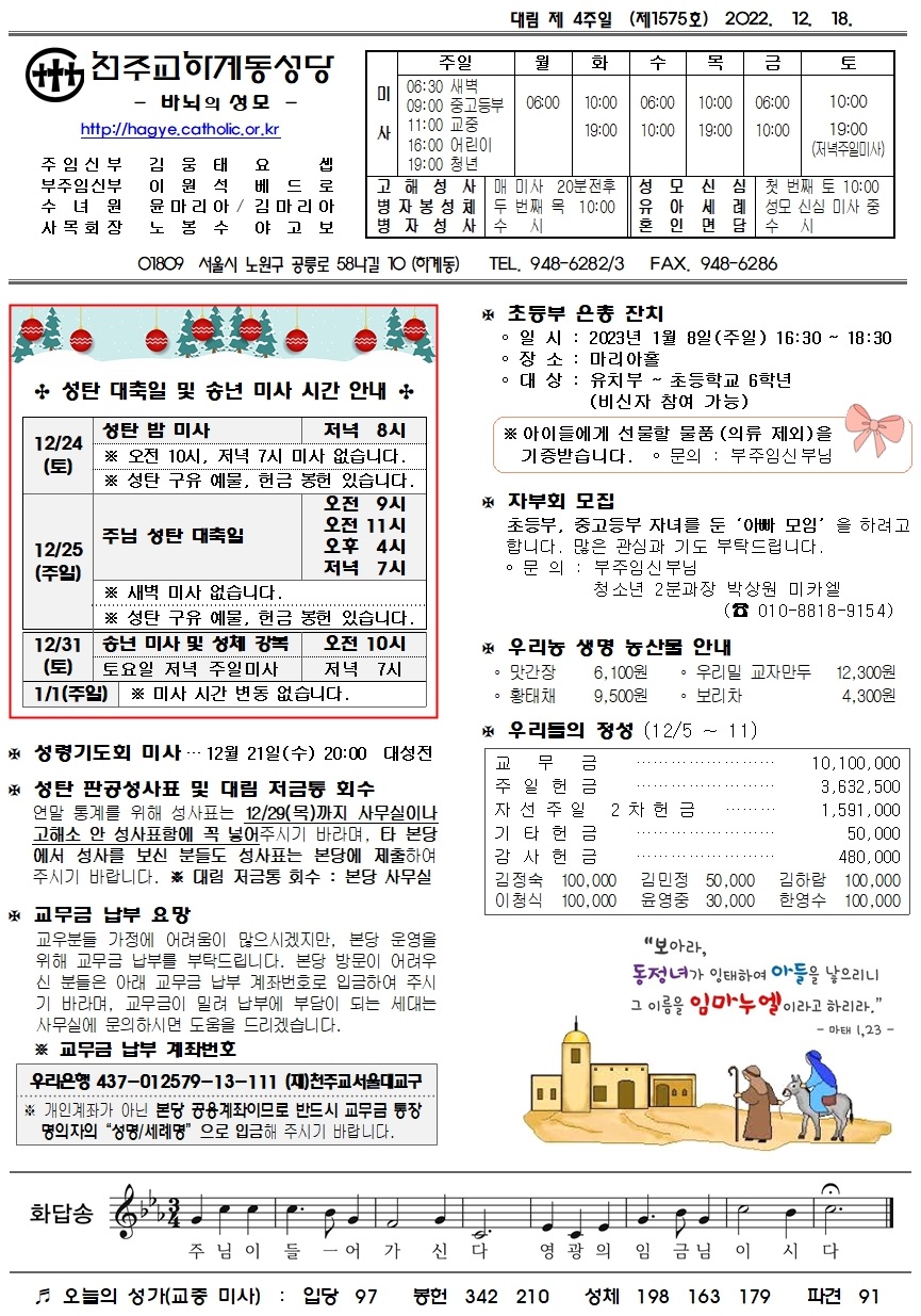 제1575호(2022. 12. 18.) 하계동성당주보 : 대림 제 4주일
