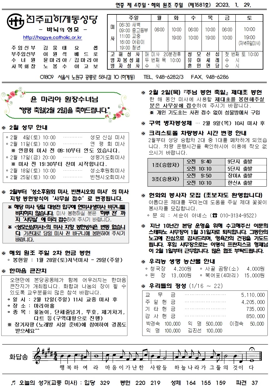 제1581호(2023. 1. 29.) 하계동성당주보 : 연중 제 4주일 · 해외 원조 주일