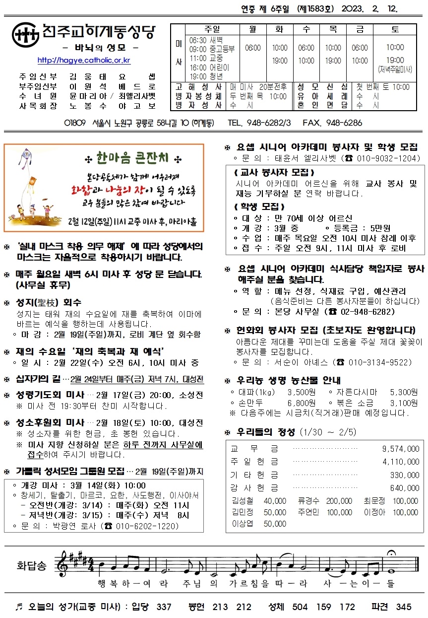 제1583호(2023. 2. 12.) 하계동성당주보 : 연중 제 6주일