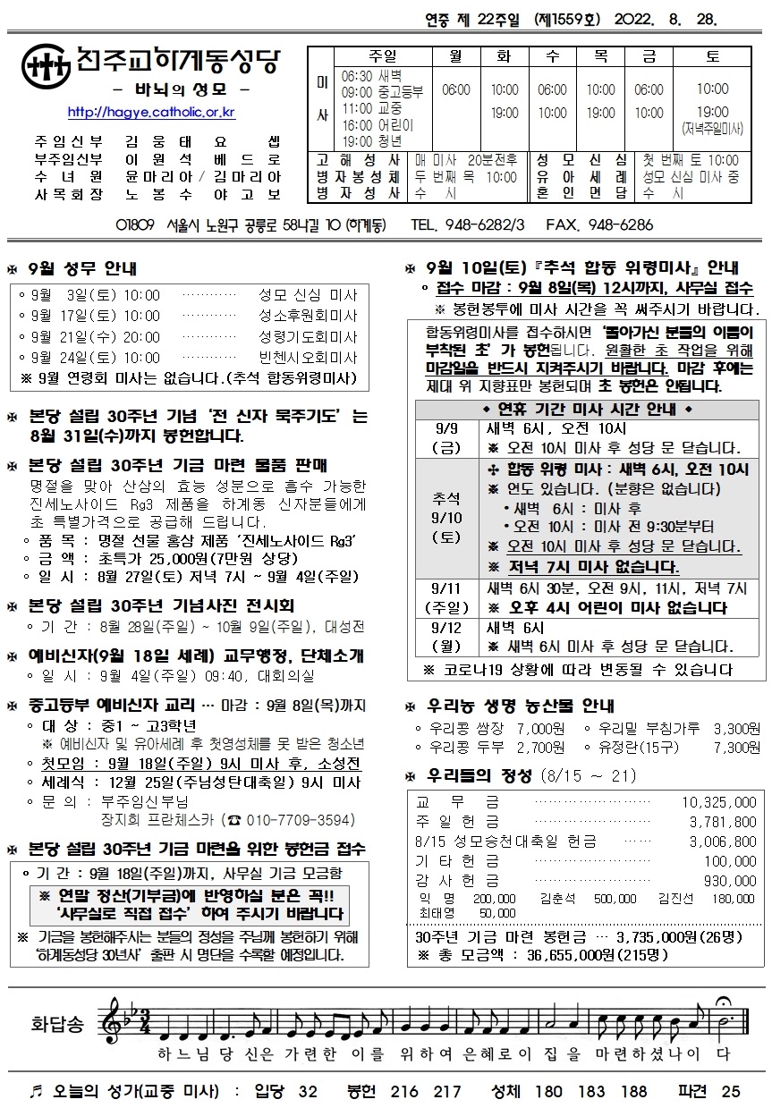 제1559호(2022. 8. 28.) 하계동성당주보 : 연중 제 22주일