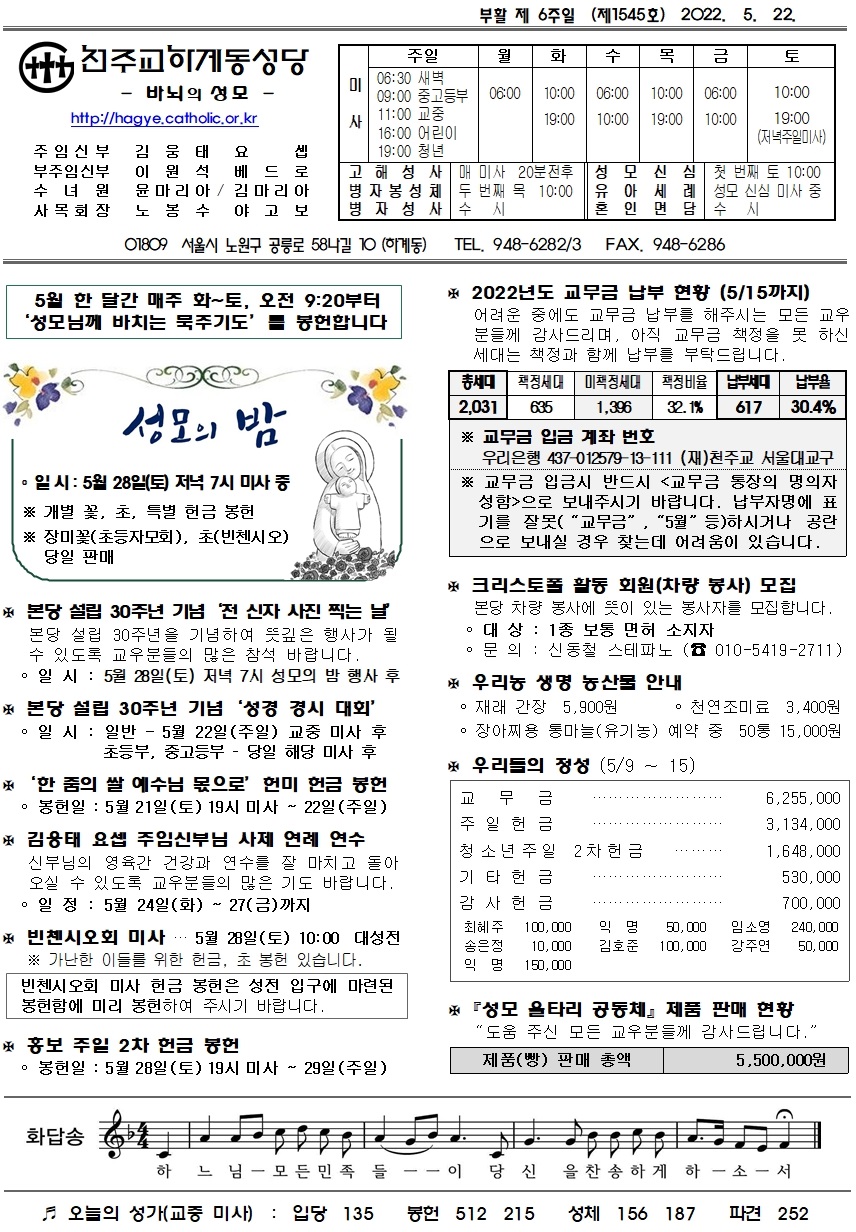 제1545호(2022. 5. 22.) 하계동성당주보 : 부활 제 6주일