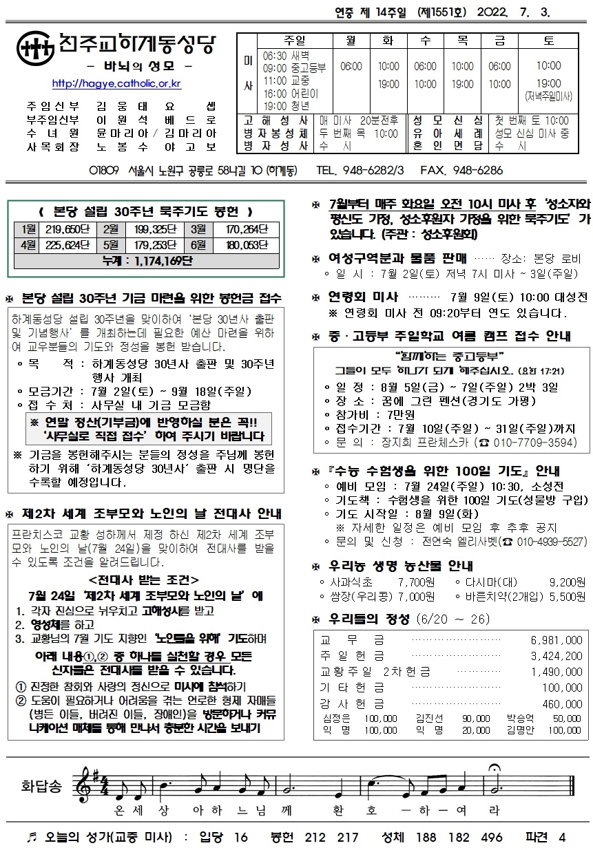 제1551호(2022. 7. 3.) 하계동성당주보 : 연중 제 14주일