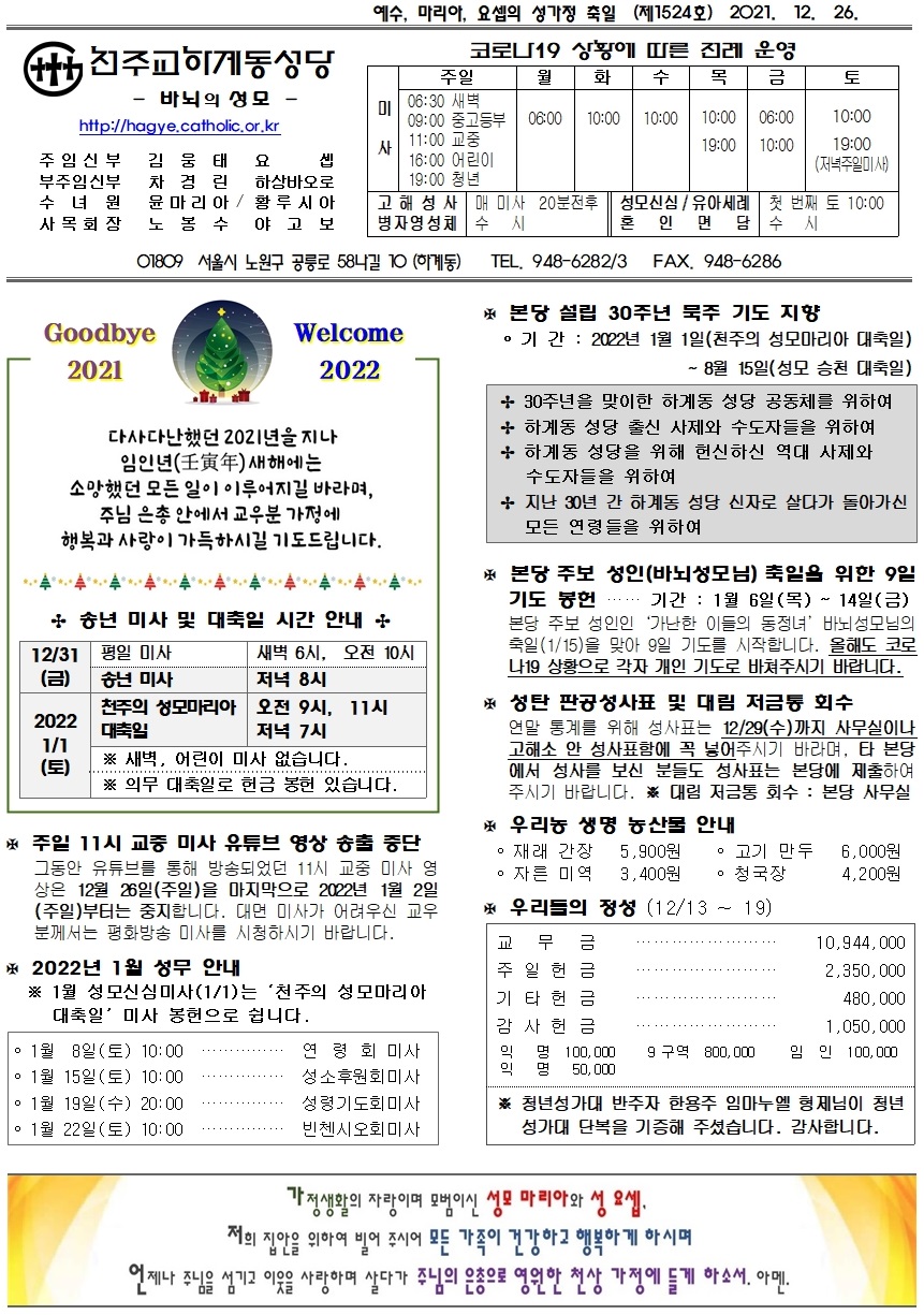 제1524호(2021. 12. 26.) 하계동성당주보 : 예수, 마리아, 요셉의 성가정 축일