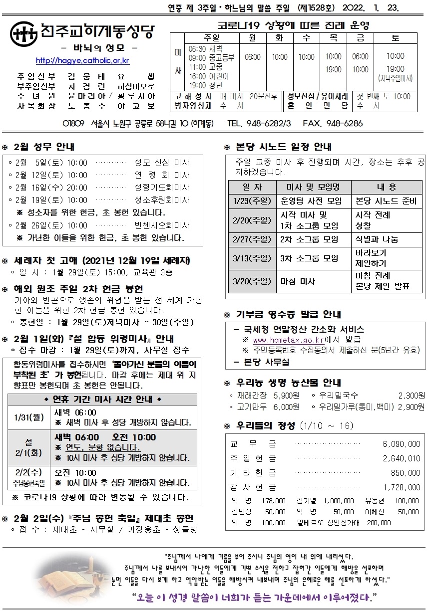 제1528호(2022. 1. 23.) 하계동성당주보 : 연중 제 3주일 · 하느님의 말씀 주일