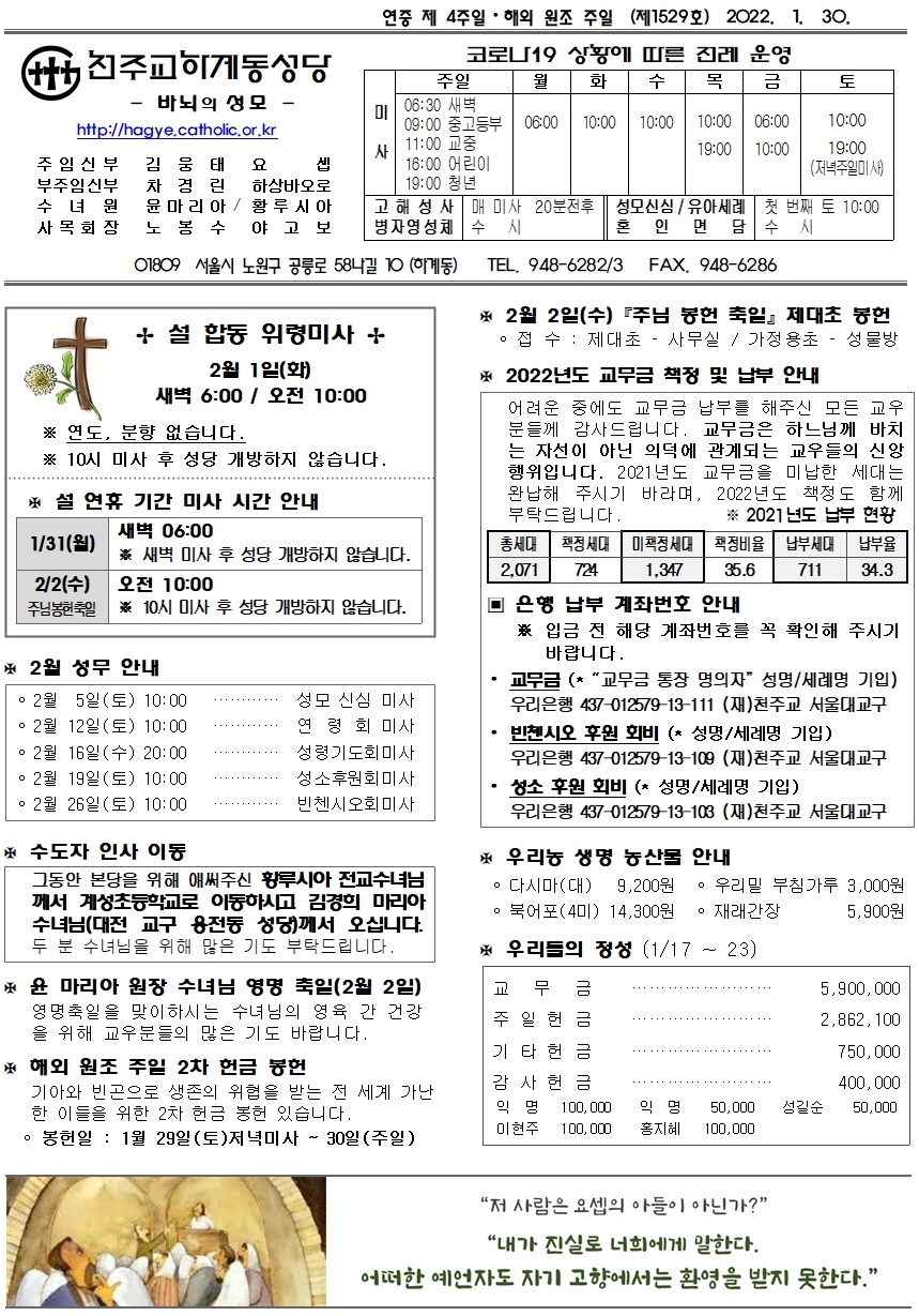 제1529호(2022. 1. 30.) 하계동성당주보 : 연중 제 4주일 · 해외 원조 주일