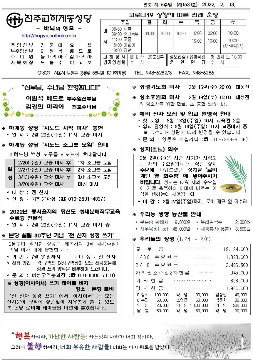 제1531호(2022. 2. 13.) 하계동성당주보 : 연중 제 6주일