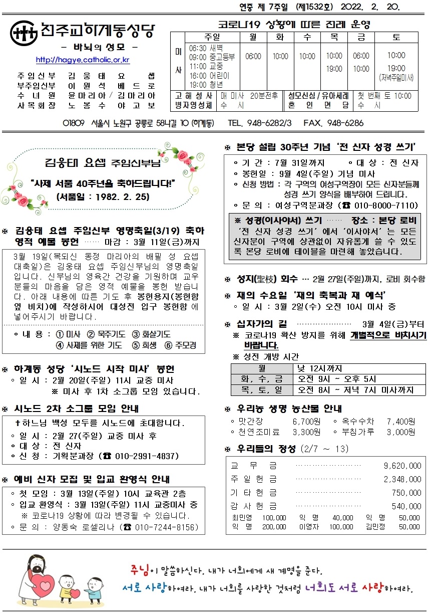 제1532호(2022. 2. 20.) 하계동성당주보 : 연중 제 7주일