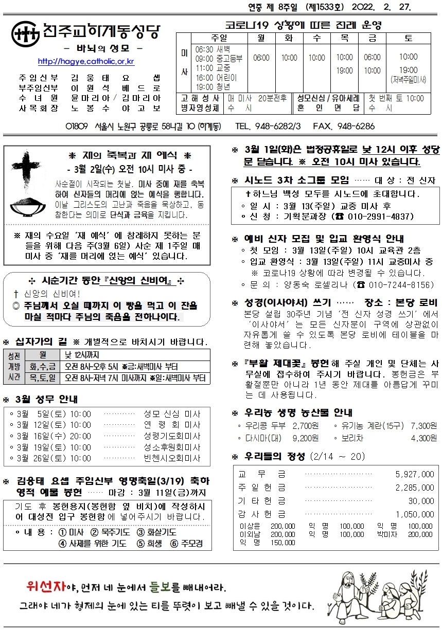 제1533호(2022. 2. 27.) 하계동성당주보 : 연중 제 8주일