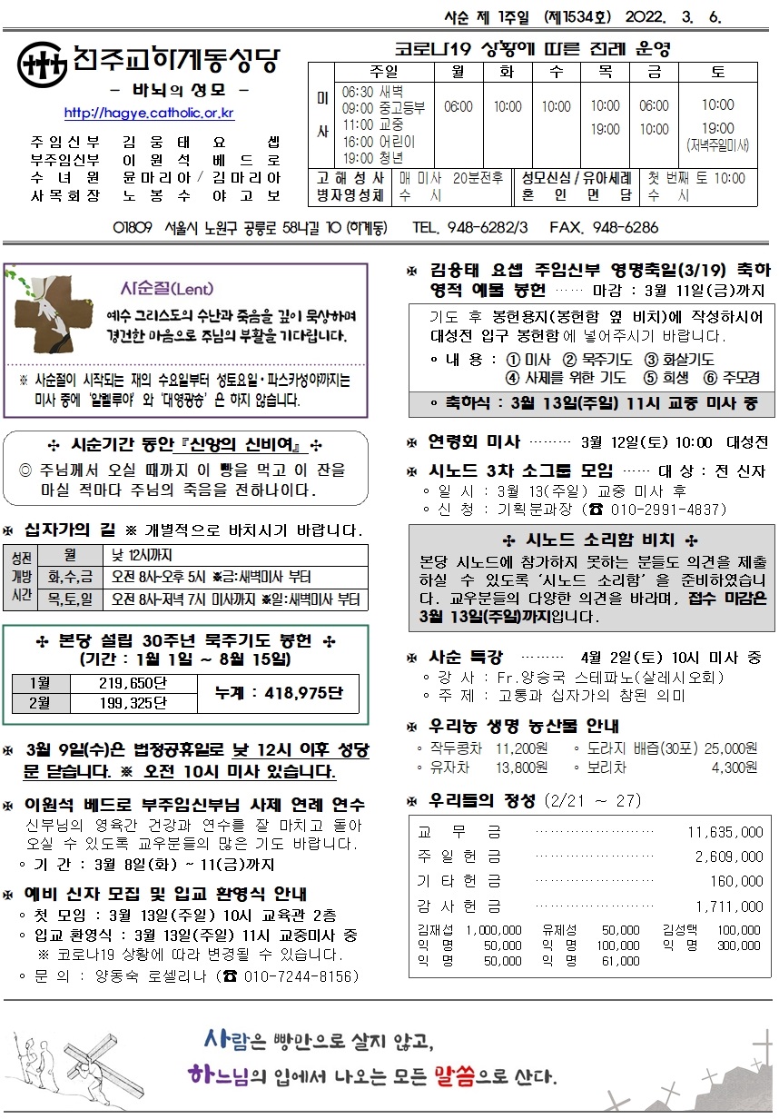 제1534호(2022. 3. 6.) 하계동성당주보 : 사순 제 1주일