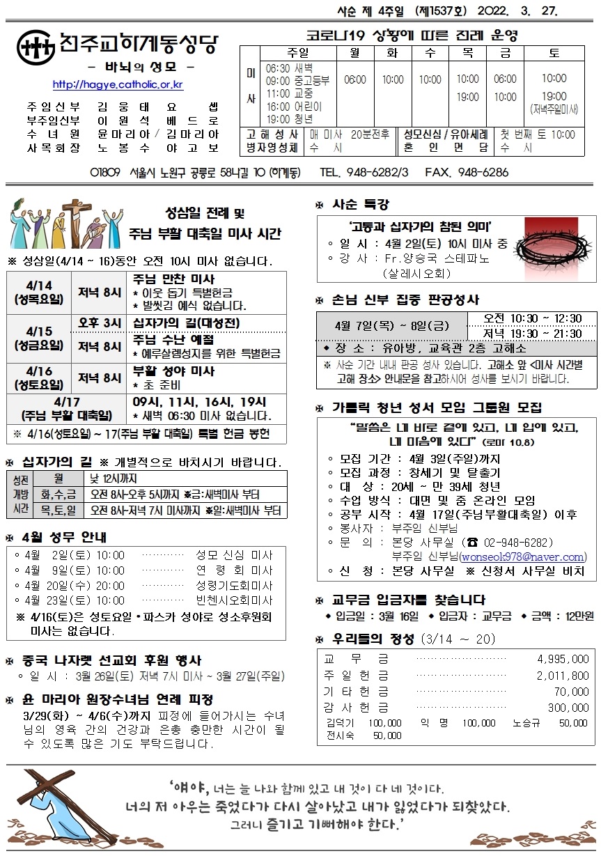 제1537호(2022. 3. 27.) 하계동성당주보 : 사순 제 4주일