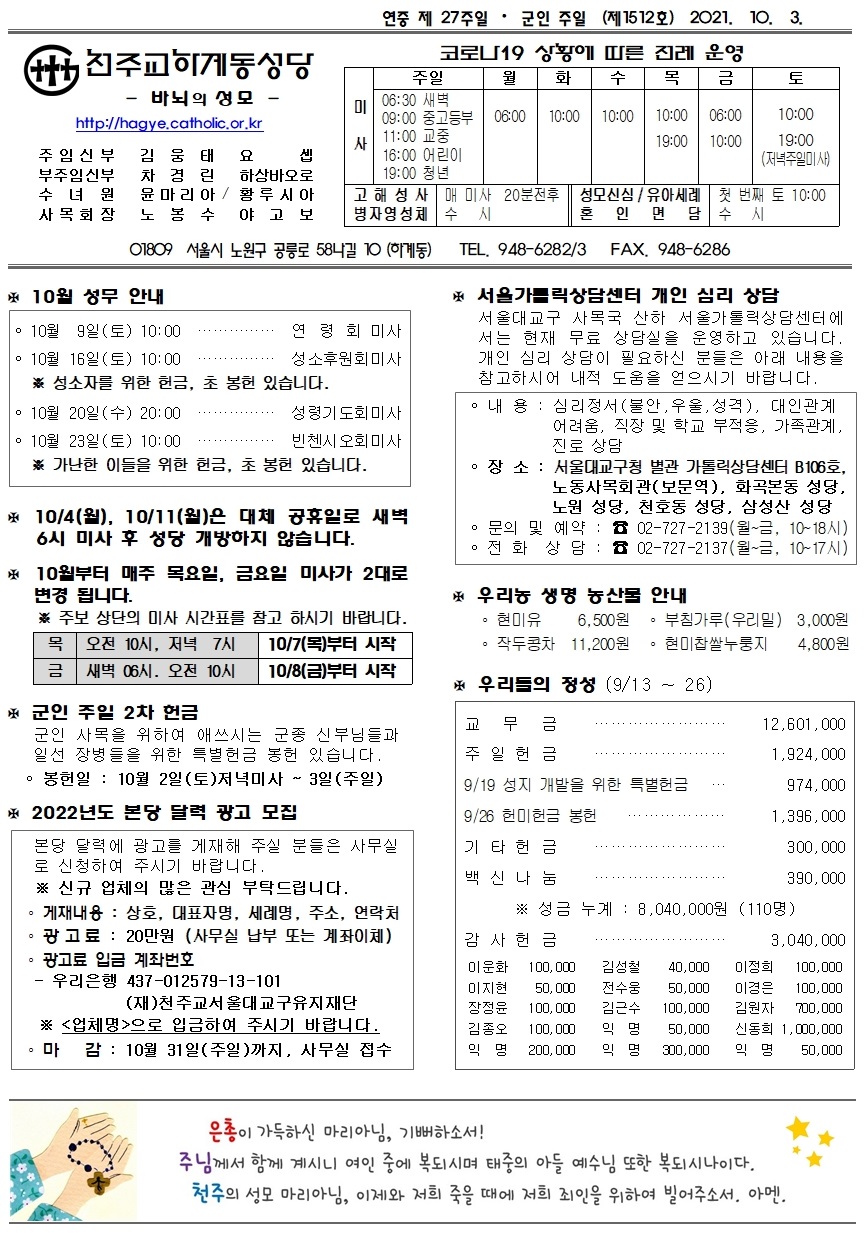 제1512호(2021. 10. 03.) 하계동성당주보 : 연중 제 27주일 · 군인 주일