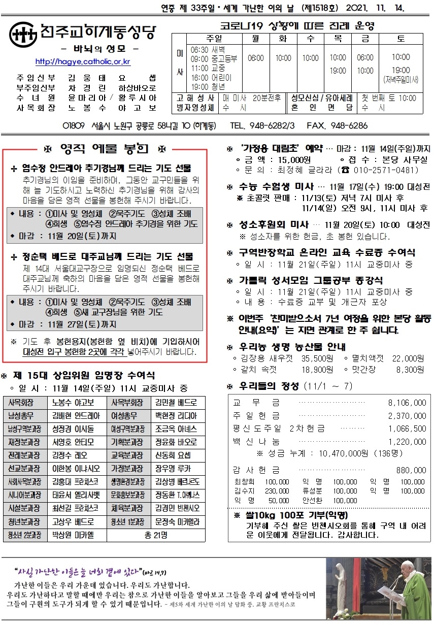 제1518호(2021. 11. 14.) 하계동성당주보 : 연중 제 33주일 · 세계 가난한 이의 날