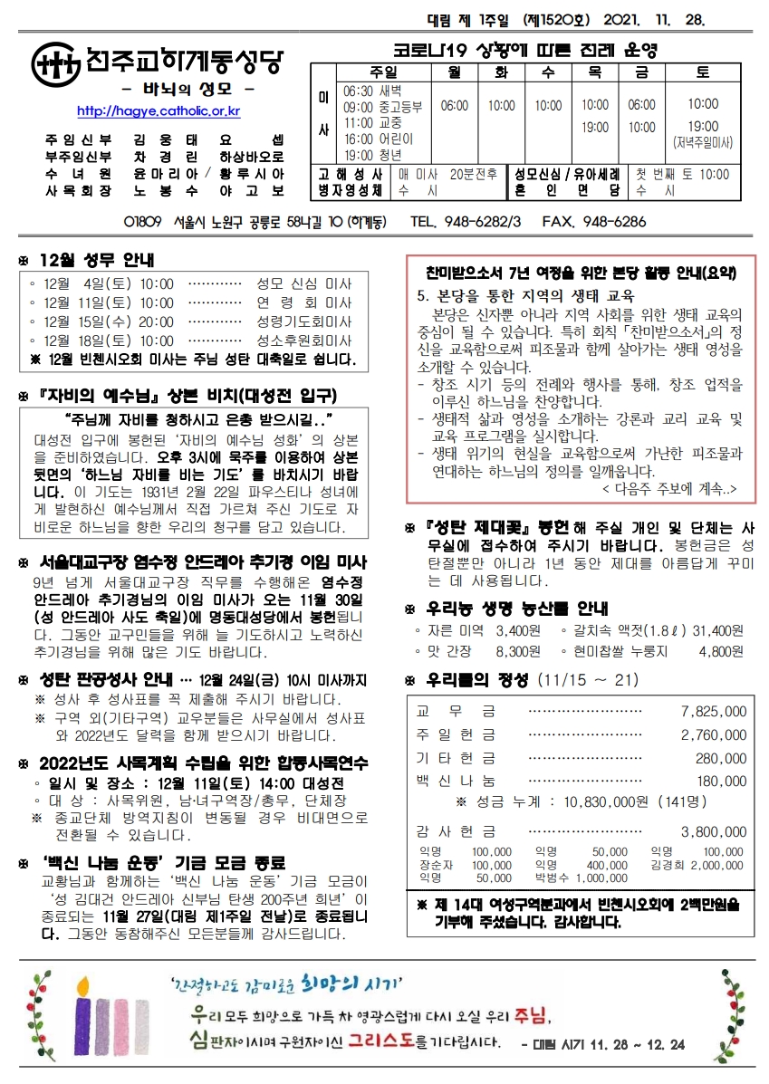 제1520호(2021. 11. 28.) 하계동성당주보 : 대림 제 1주일