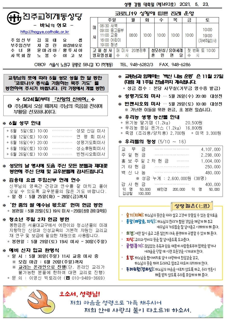 제1493호(2021. 05. 23.) 하계동성당주보 : 성령 강림 대축일