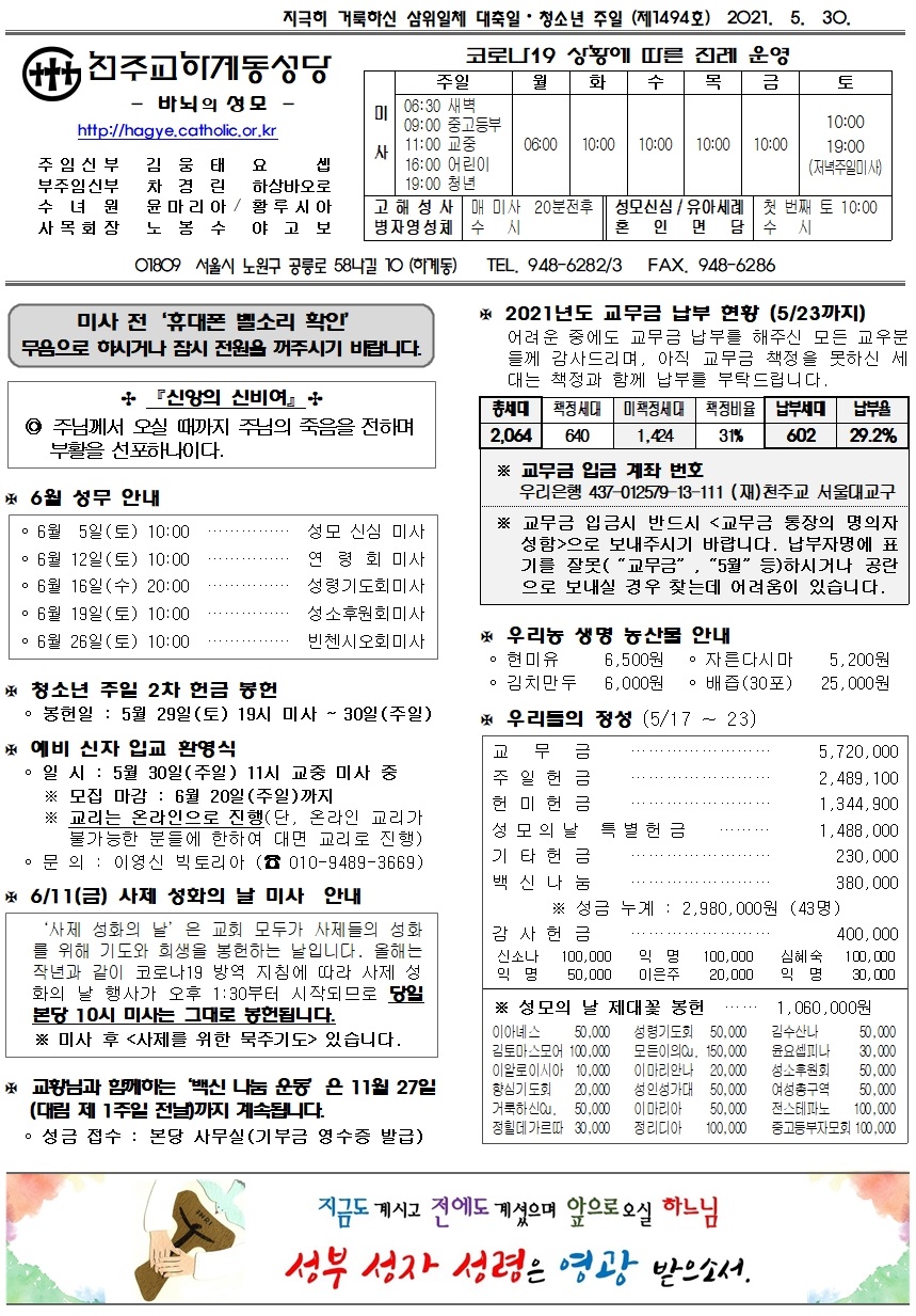 제1494호(2021. 05. 30.) 하계동성당주보 : 지극히 거룩하신 삼위일체 대축일 · 청소년 주일