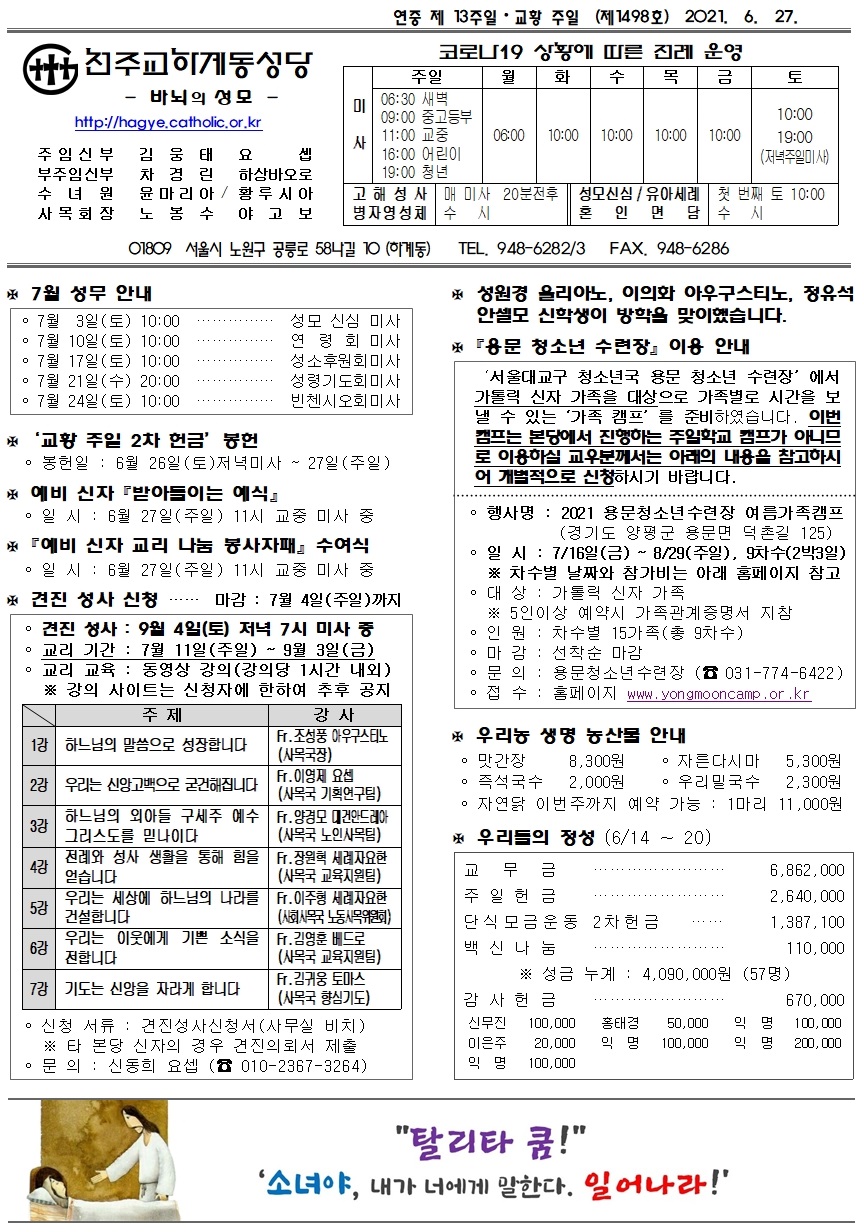 제1498호(2021. 06. 27.) 하계동성당주보 : 연중 제 13주일 · 교황 주일