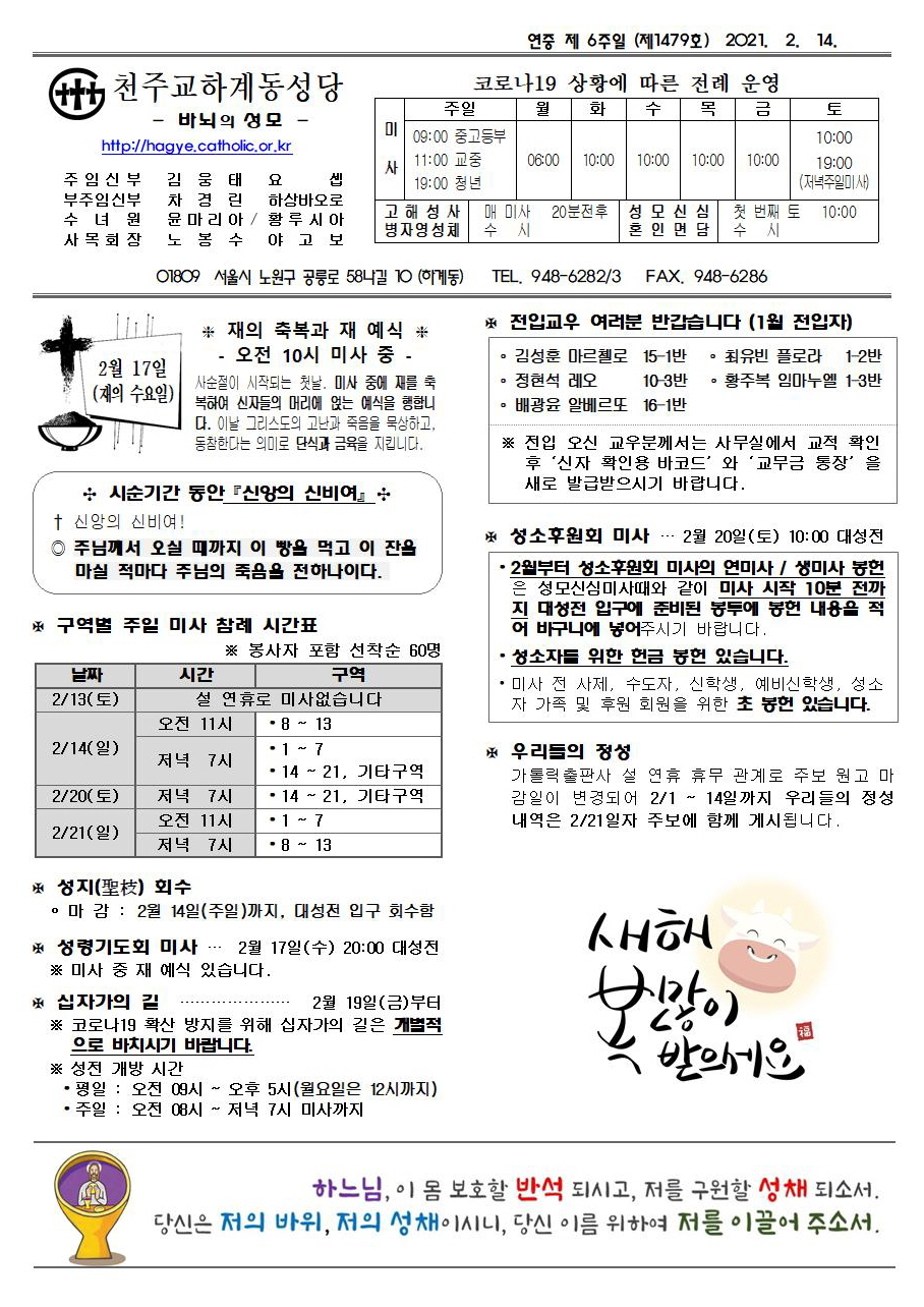 제1479호(2021. 02. 14.) 하계동성당주보 : 연중 제 6주일