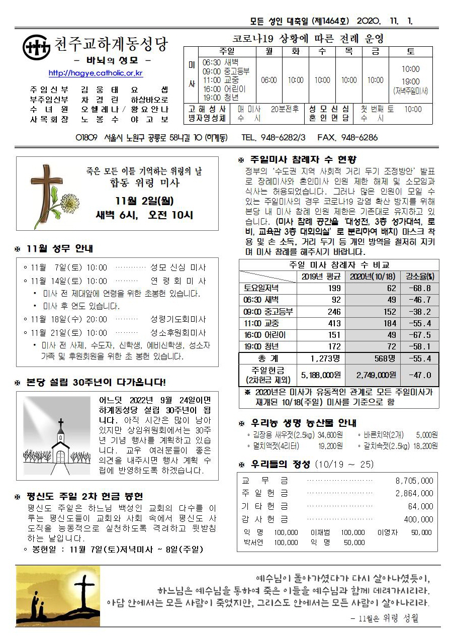 제1464호(2020. 11.01) 하계동성당주보 : 모든 성인 대축일