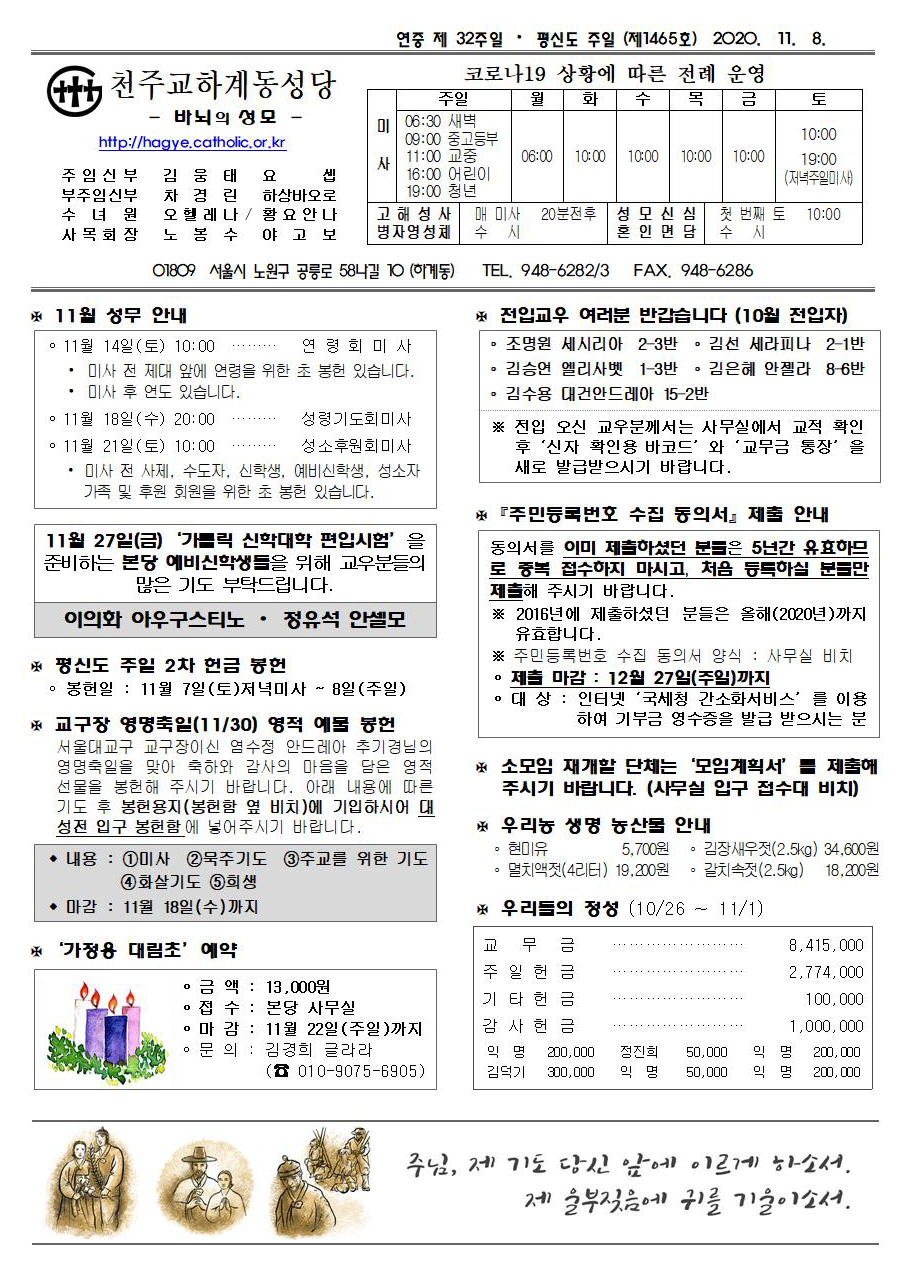 제1465호(2020. 11.08) 하계동성당주보 : 연중 제 32주일 / 평신도 주일
