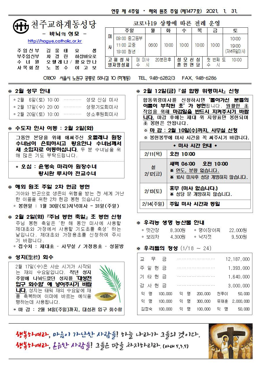 제1477호(2021. 01.31.) 하계동성당주보 : 연중 제 4주일 / 해외 원조 주일
