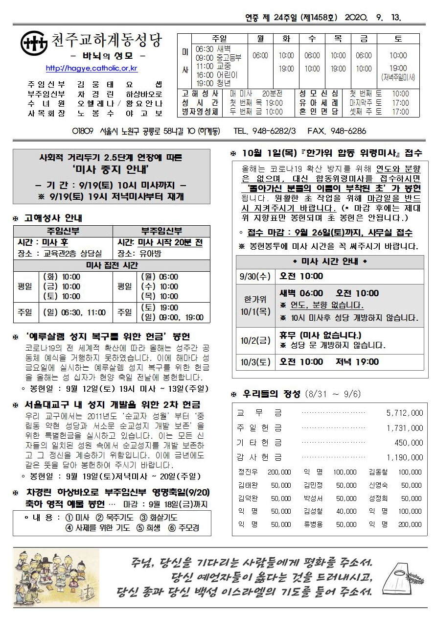 제1458호-가(2020. 09.13) 하계동성당주보 : 연중 제 24주일