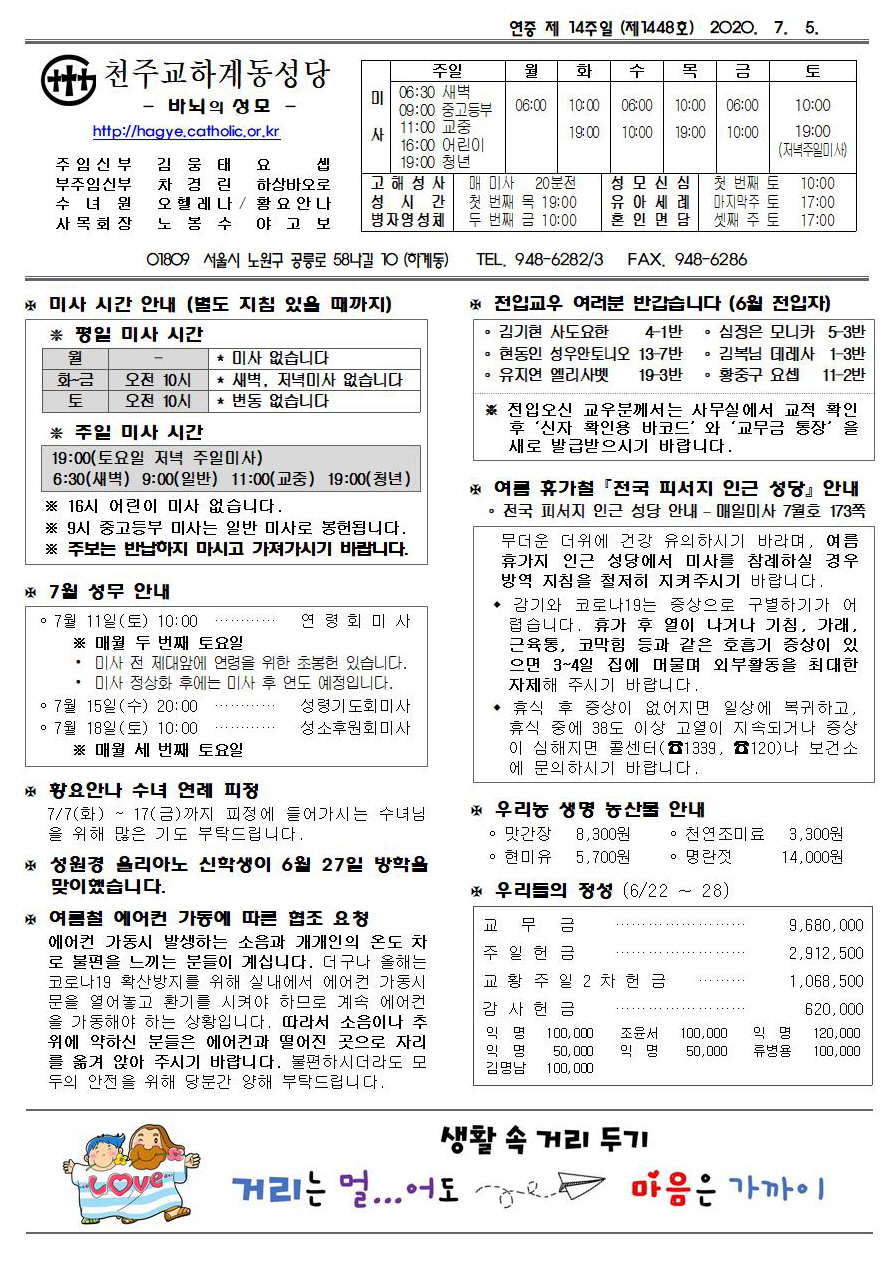 제1448호(2020. 07.05) 하계동성당주보 : 연중 제 14주일
