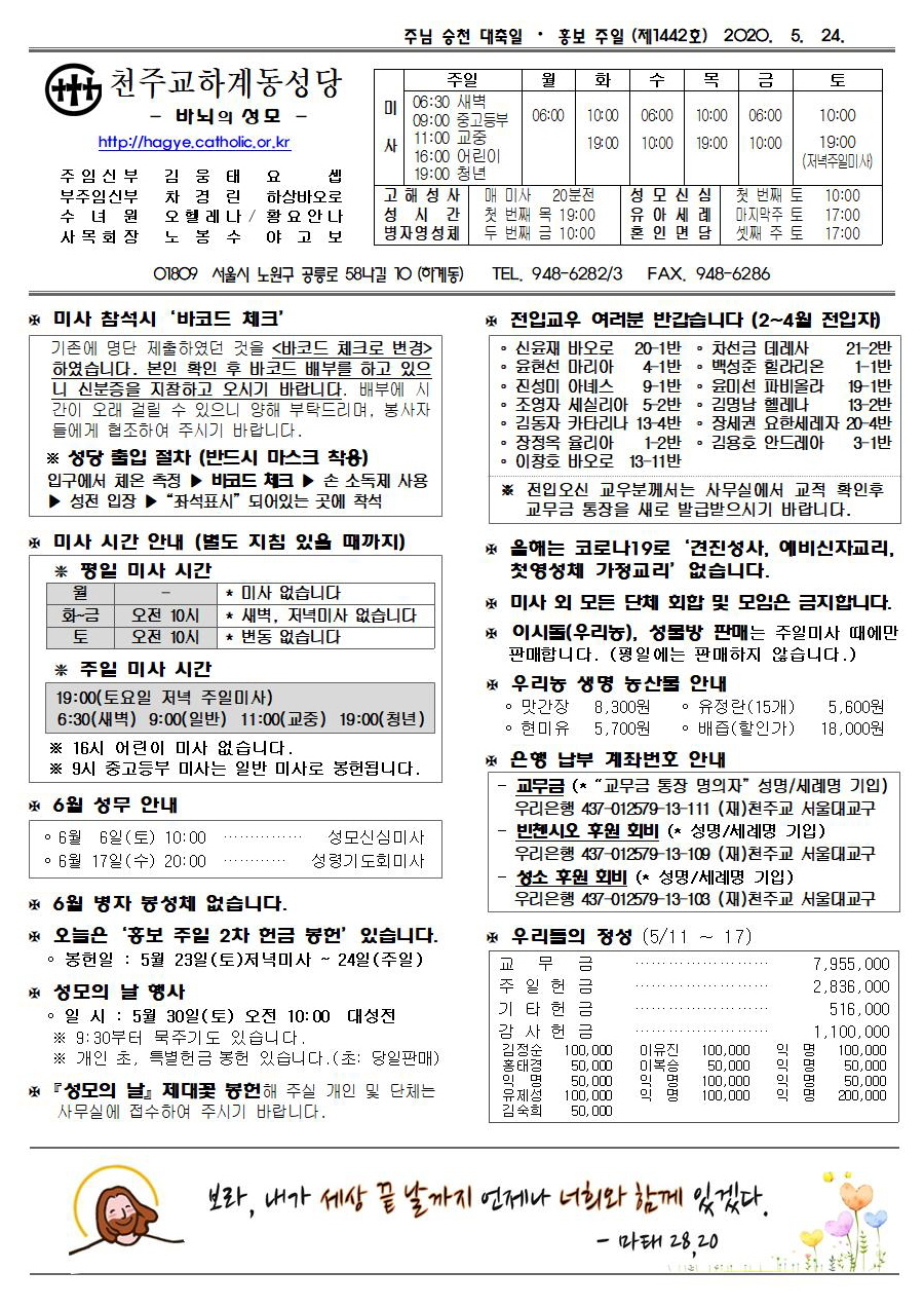 제1442호(2020. 05.24) 하계동성당주보 : 주님 승천 대축일 / 홍보주일