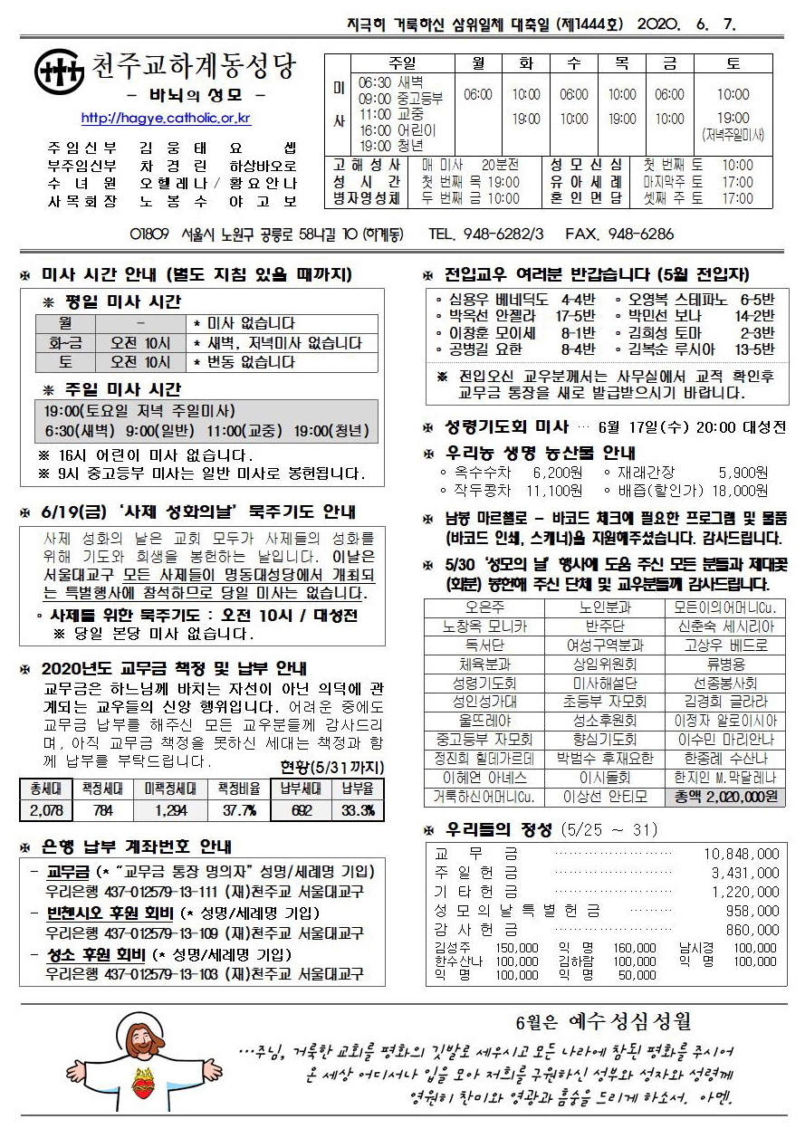 제1444호(2020. 06.07) 하계동성당주보 : 지극히 거룩하신 삼위일체 대축일