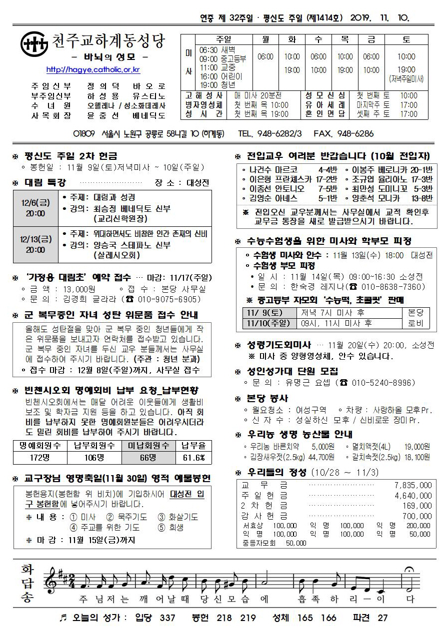 제1414호(2019. 11.10) 하계동성당주보 : 연중 제 32주일 / 평신도주일