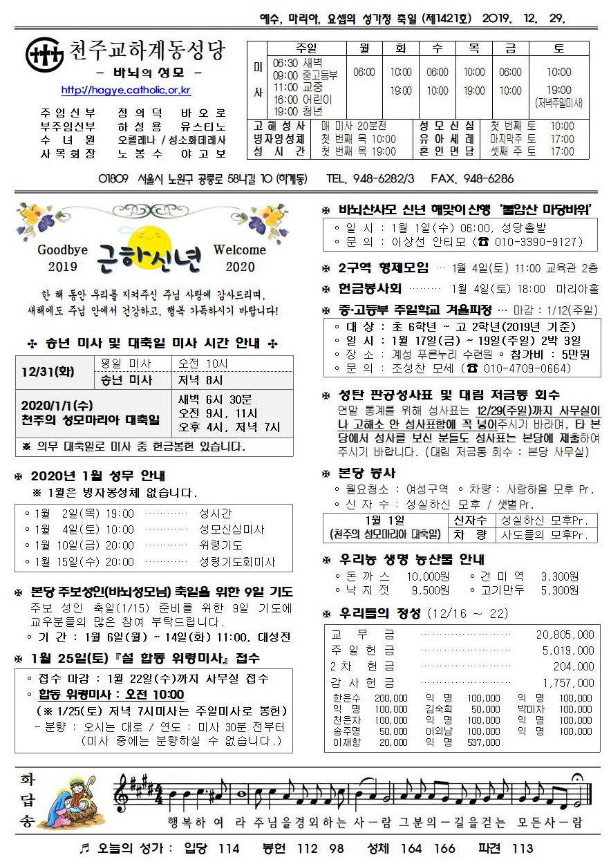제1421호(2019. 12.29) 하계동성당주보 : 예수, 마리아, 요셉의 성가정 축일